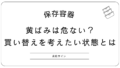 ただ、年数が浅くても、変色・におい・ベタつき・洗いにくさが気になるなら、それは十分に見直しを考える理由になります。