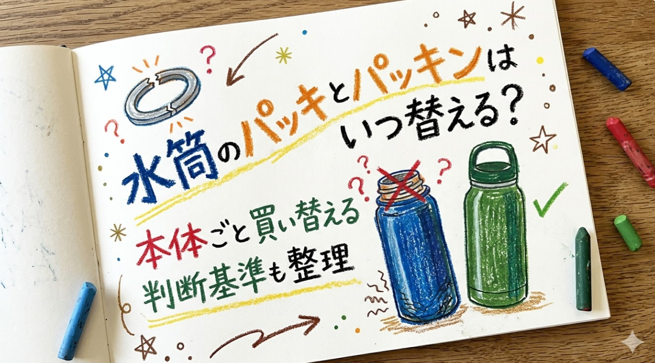 この記事では、水筒のパッキンを交換したほうがよいサインと、パッキン交換では足りず本体ごとの買い替えを考えたいケースを分けて整理します。